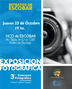 El Centro Cultural Cazador invita a la inauguración de la muestra fotográfica que tendrá lugar el jueves 23 de octubre a las 19 horas, en el Honorable Concejo Deliberante de Escobar, ubicado en Av. Tapia de Cruz 1280, Belén de Escobar.