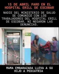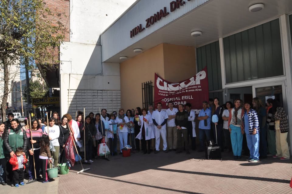 Bajo la consigna “Basta de recortes al Hospital Erill. Reincorporación ya de los siete clínicos despedidos”, trabajadores del hospital provincial de Belén de Escobar convocaron hoy a un paro.
